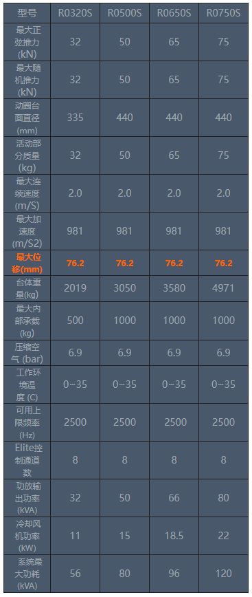 76 mm位移,32-75kN推力將標準設(shè)備的51mm位移提高到76mm,可滿足運輸環(huán)境振動試驗條件。如GJB150(A)中輪式戰(zhàn)車運輸試驗。推薦研制車載或載艦載裝備的軍工單位選擇該系列產(chǎn)品裝備試驗室。該大位移系列設(shè)備可同時滿足標準試驗系統(tǒng)可以完成的各個行業(yè)標準試驗規(guī)范。